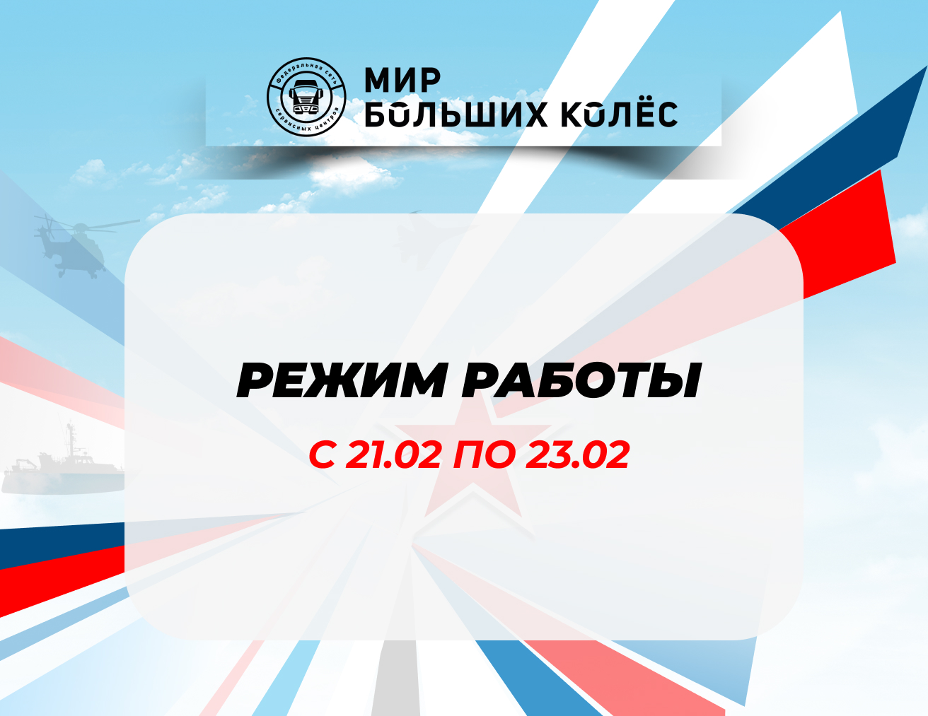 Режим работы с 21.02 по 23.02